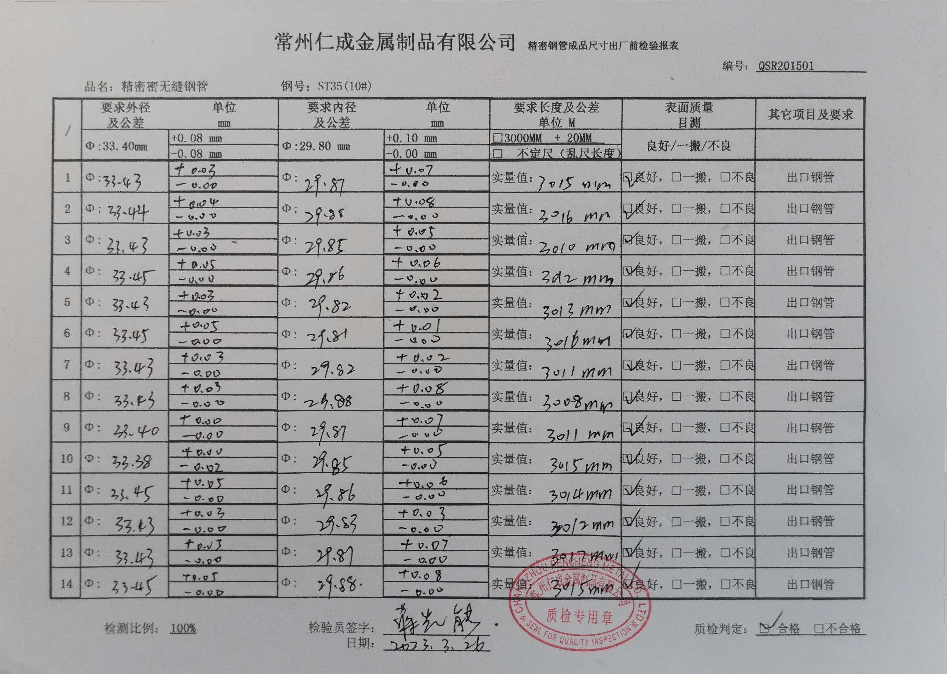 上图为我公司多年稳定出口国外的精密钢管,我们的钢管在尺寸精度,内外的清洁度,防锈,尺寸公差,长度公差,机械性能,等各项指标客户都十分的满意。